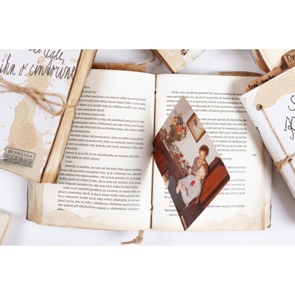 Každý výtlačok bude originál, žiadna obálka nebude rovnaká, nijaká príloha v knihe sa nezopakuje – niektorí z vás v knihe nájdu vyplnený starý tiket Športky, niekto fotku s ťavou z prvej návštevy ZOO a iný bude mať šťastie a nájde štvorlístok… Je to žákbamačka z Komárna!
